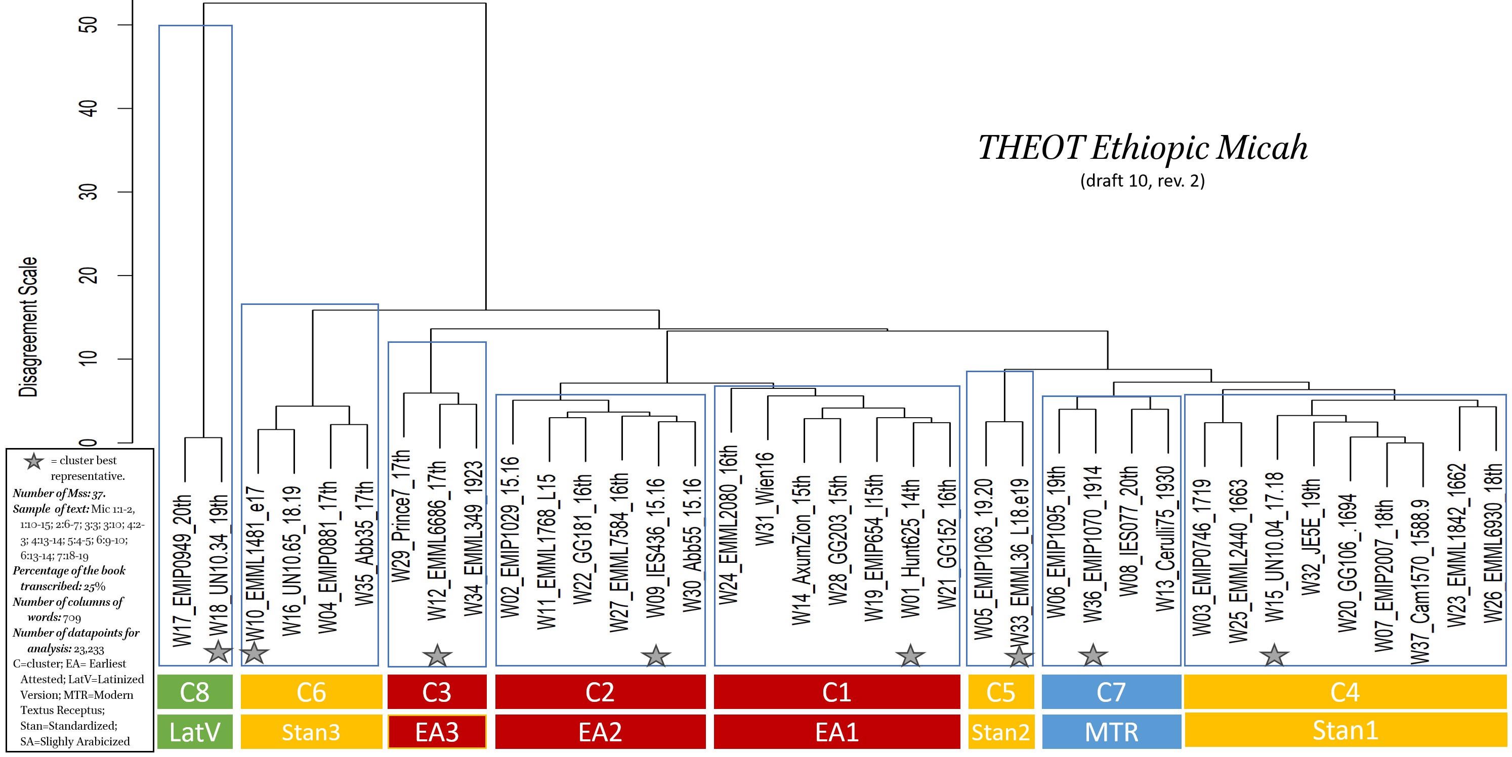 UNESCO 10.34 (1931), and EMML 7942 (20th, though not present in this sample) represent a minor recension, translated from the Latin Vulgate, with a 53% degree of difference from the rest of the tradition with with only a 1% difference between them.